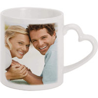 Fotohrnek s ouškem ve tvaru srdíčka – barva bílá, výška 9 cm, průměr 8 cm, baleno v sáčku s kartičkou do krabičky. Mytí doporučujeme vodou bez agresivních chemických čistících prostředků