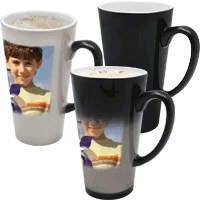 Hrnek latte - barva černá, MAGIC (po nalití horkého nápoje hrnek zbělá a zvýrazní se foto). Barva hrnku není dokonale krycí, tudíž je vidět foto i bez horkého nápoje!