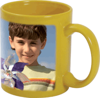 Fotohrnek – barva žlutá, výška 9 cm, průměr 8 cm, baleno v sáčku s kartičkou do krabičky. Potisk není možný bez pozadí, ale vždy pouze ve velikosti potisknutelné plochy - 7,7x5,8 cm nebo 7,7x10,3cm případně 7,7x7,9 cm. Mytí doporučujeme vodou bez agresivních chemických čistících prostředků