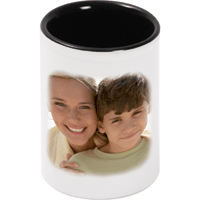 Tužkounek - stojánek na tužky a propisky v barvě bílé s černým vnitřkem a s jedním potiskem, výška 12,5 cm, průměr 9 cm, baleno v sáčku s kartičkou do krabičky.