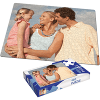 Puzzle obrázek z vlastní fotografie a s krabičkou o rozměrech 32x19,5x4 cm, která je zhotovena také s vlatním potiskem. V editoru je k výběru několik stylů krabiček