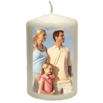 Svíčka - barva bílá s jedním potiskem, výška 12 cm, průměr 6 cm. Potisk do velikost cca 7,6x11 cm. Potisk není možný bez pozadí.