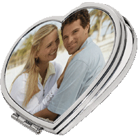 Zrcátko kovové ve tvaru srdce s vlastním potiskem o velikosti 6,2x5,6 cm, zrcátko je otevírací a uvnitř obsahuje po obou stranách po jednom zrcátku. Na zadní straně textura.