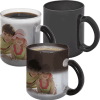 Hrnek MAGIC skleněný, barva černá, po nalití horkého nápoje hrnek zbělá a zvýrazní se foto. Barva hrnku není dokonale krycí, tudíž je vidět foto i bez horkého nápoje!, výška 9,5 cm, průměr 8 cm, baleno v sáčku s kartičkou do krabičky. Mytí vodou bez agresivních chem. prostředků.