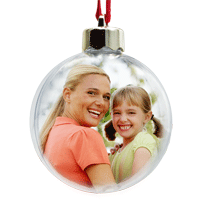 Vánoční ozdoba - plastová, průměr 7,5 cm, oboustranný potisk, baleno v krabičce. Plastová koule s dvěma fotografiemi vloženými uvnitř ozdoby.