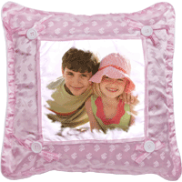 Polštářek - 1x potisk, velikost 35x35 cm, barva růžová. Polštářek se skládá s potisknutého povlaku přivázaný na mašličky k polštářku a vnitřní výplně. Praní na 40 st., žehlení na ruby.