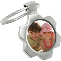 Klíčenka kovová ve tvaru slunecnice s vlastním potiskem o průměru 2,5 cm. Klíčenka je opatřena kroužkem na zavěšení, je zabalena do krabičky.